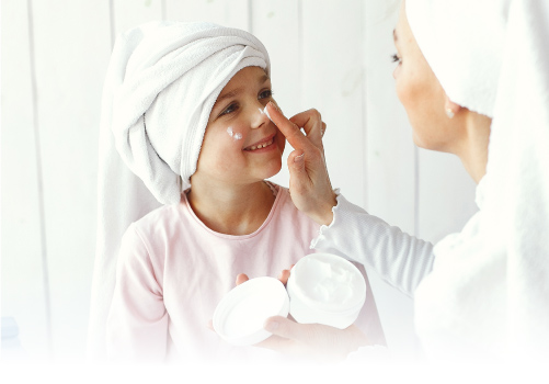 ในเด็กอายุมากกว่า 6 เดือน สามารถใช้ครีมกันแดดที่ทำจากสารประเภท Physical Sunscreen ทำหน้าที่สะท้อนรังสี UV ออกจากผิวหนังทันที ส่วนผสมของสาร Physical Sunscreen นี้ไม่ดูดซึมเข้าสู่ผิวหนังและปลอดภัยสำหรับเด็ก ผู้ปกครองควรสังเกตข้างฉลากมักมีส่วนประกอบของ Oxide และ Titanium Zinc Dioxide เป็นหลัก เนื่องจากแต่ละผลิตภัณฑ์ในท้องตลาดมีส่วนผสมที่แตกต่างกัน แนะนำให้อ่านฉลากกำกับทุกครั้งก่อนการใช้